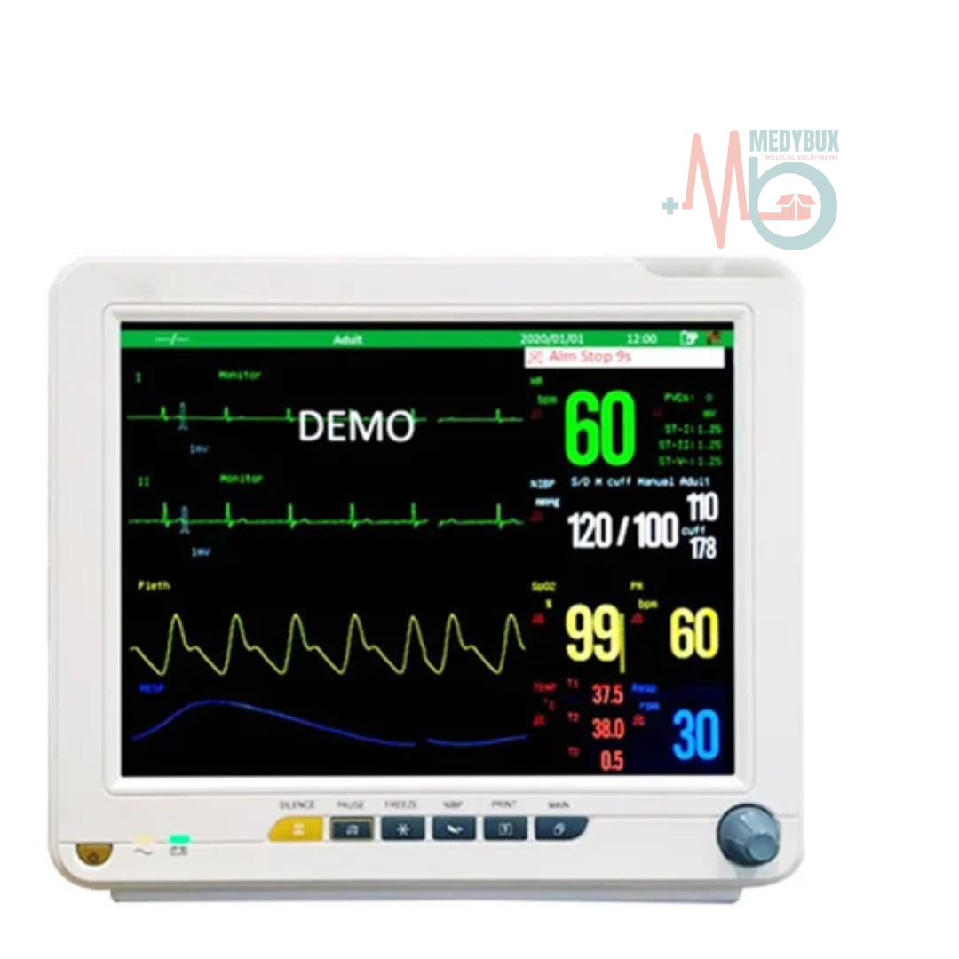 Designed for precision and efficiency, the 5 Para Monitor with a 12.1-inch TFT screen provides continuous, real-time monitoring of five essential parameters: ECG, SpO₂, NIBP, Pulse Rate (PR), and Respiratory Rate. Ideal for hospitals, clinics, and emergency care environments, this monitor combines reliability with a user-friendly interface.