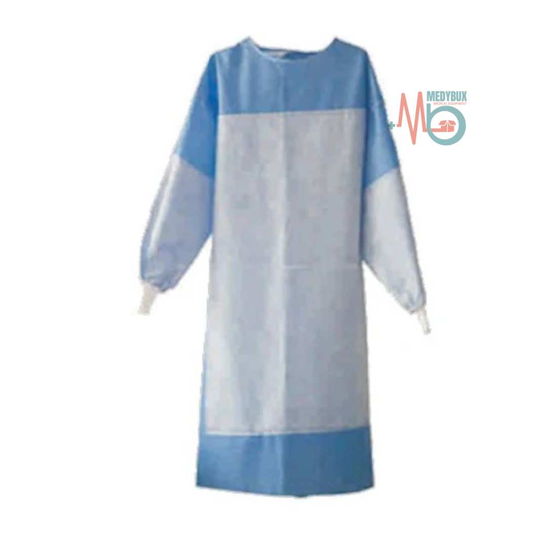 Engineered for maximum protection in healthcare settings, the Ultrasonic-Sealed Disposable Reinforced Gown combines comfort with advanced safety features. It includes knitted cuffs, an overlapped back design, four tie strips, and poly-coated non-woven reinforcement to deliver double protection against blood and fluid penetration in critical chest and arm areas. ETO sterilized and packed in a medical-grade pouch, each gown comes with two hand towels, making it ideal for operating rooms and other sterile procedures.